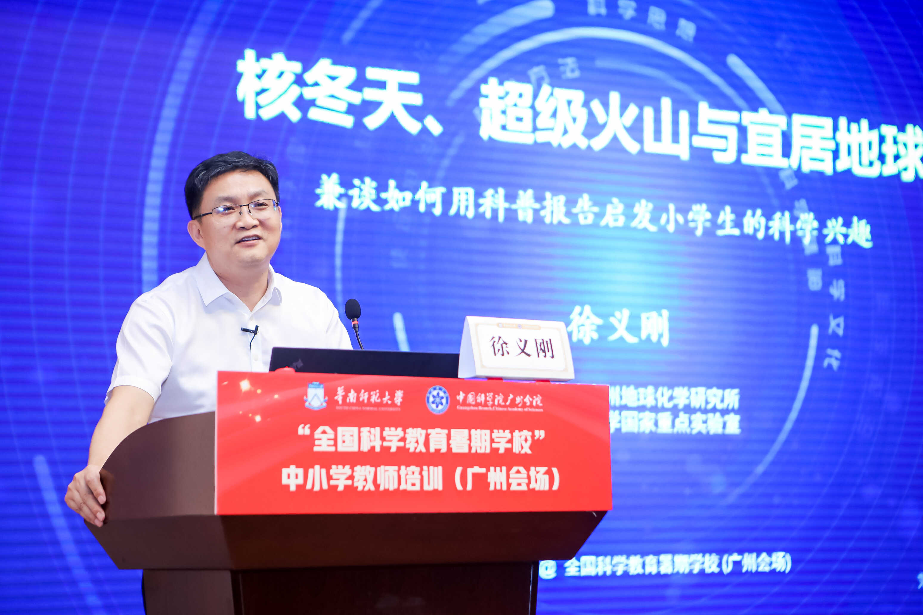 7月25日,“全国科学教育暑期学校”中小学教师培训(广州会场)在华南师范大学开班,中国工程院院士、广州实验室主任钟南山,中国科学院院士、同位素地球化学国家重点实验室主任徐义刚,围绕如何做好中小学生科学教育,为线下和线上全国中小学教师直播授课。