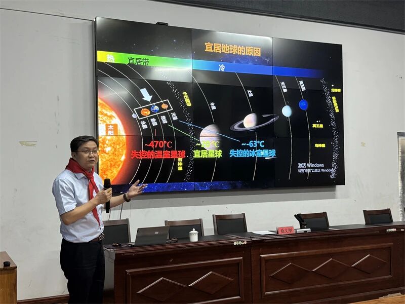 当天,徐义刚院士还为大屯小学的学生们带来了一堂生动的科普讲座,他以“地月对话:从‘阿波罗’到‘嫦娥探月’”为主题,向学生们科普了关于月球的相关知识,介绍了我国对月球持之以恒的探索之路,并与现场学生分享自己的感想。同学们认真聆听,在讲座中萌发对科学的兴趣。