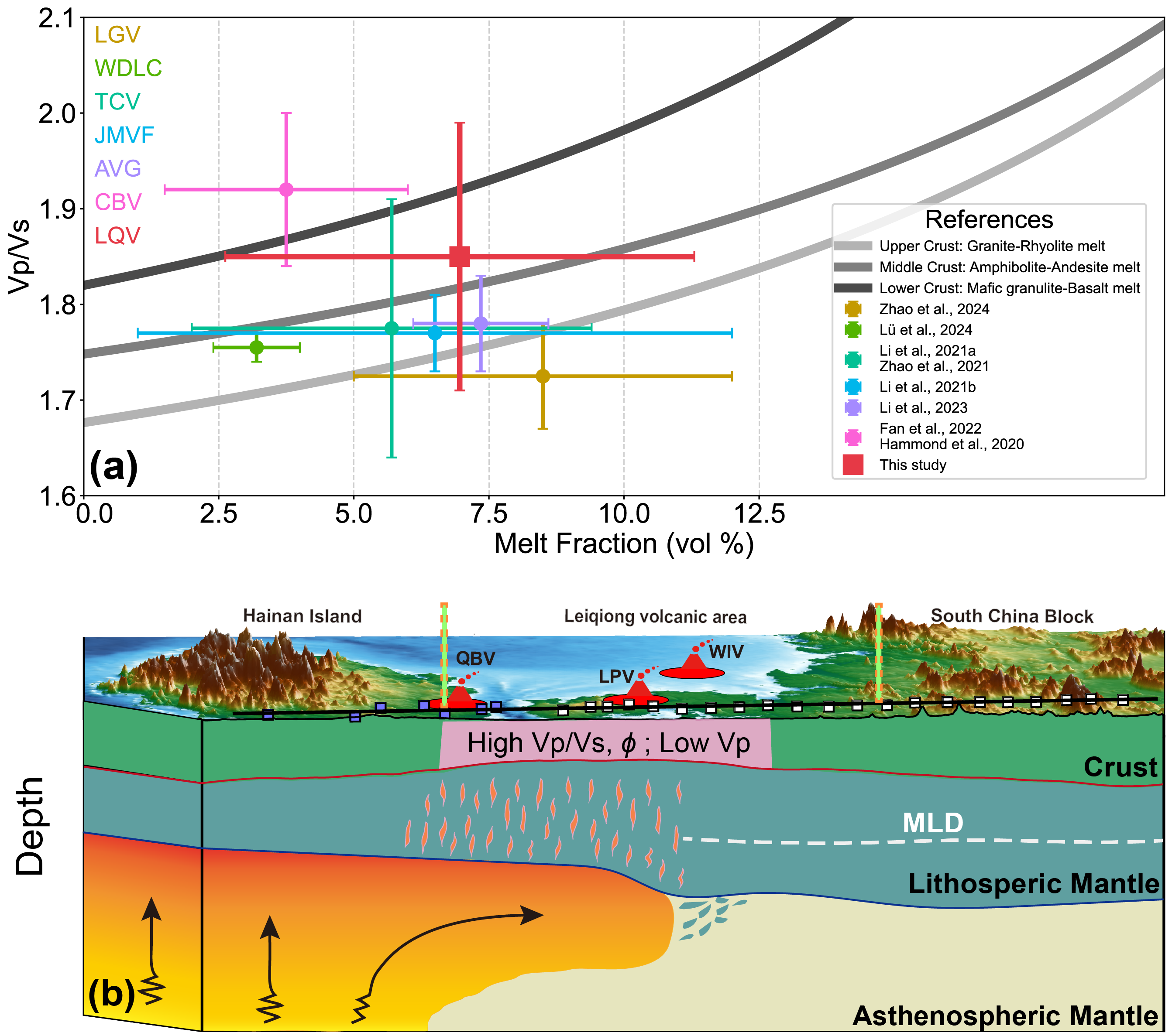 张周、邓阳凡等-GRL:雷琼火山区地壳减薄与熔融的地震学证据:揭示被动大陆边缘地幔柱-岩石圈相互作用地幔柱-岩石圈的相互作用以及被动大陆伸展作用是调控陆内火山活动与岩石圈演化的关键机制,二者协同作用对岩石圈改造和火山活动的影响仍需深入探讨。雷琼火山区位于华南陆块南部被动伸展陆缘,作为晚新生代火山活动强烈的热点,分布有数百火山锥和喷发口。地球物理成像显示雷琼火山区下方低速异常可...2025-10-21
