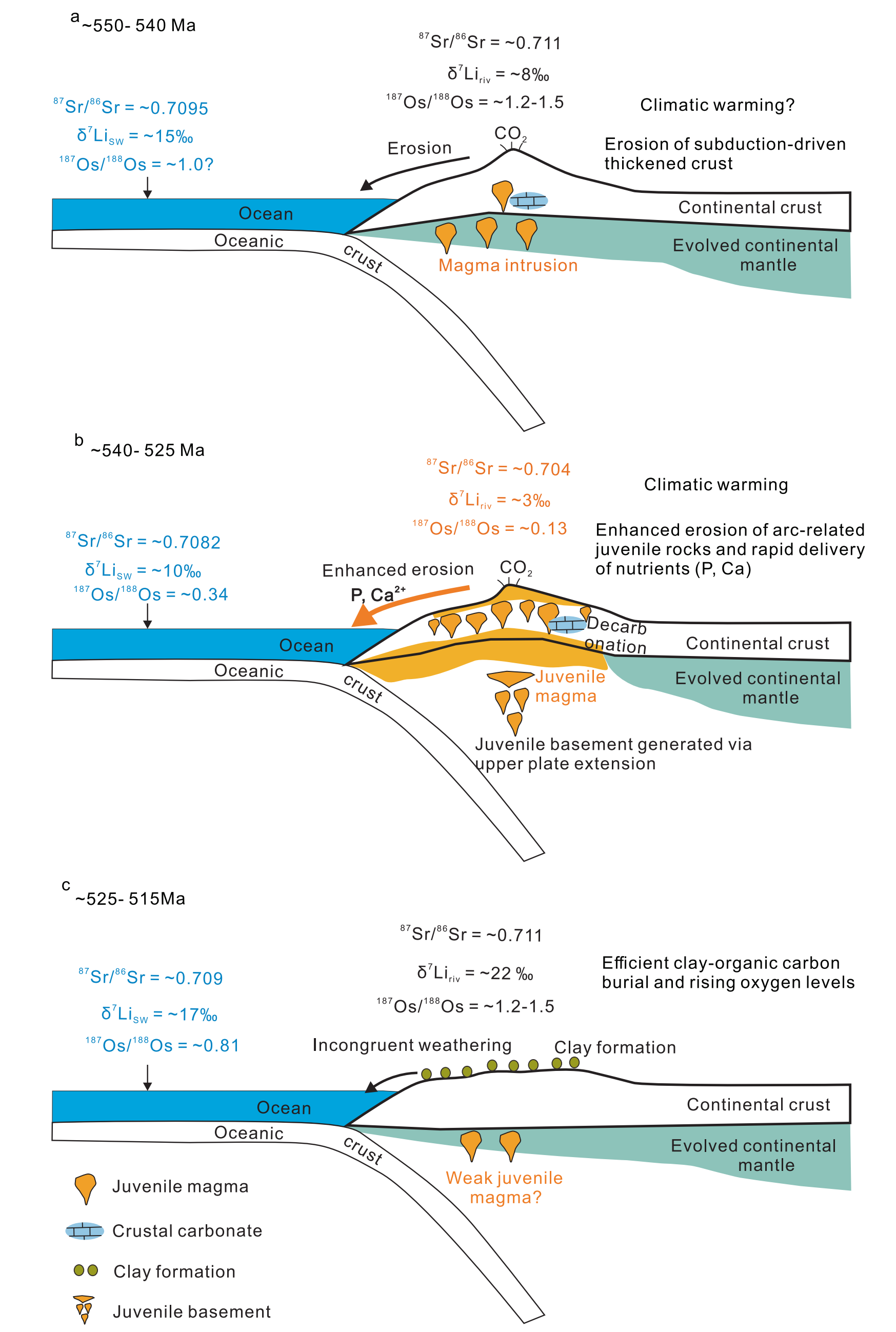 伍耀文、田辉、樊海峰等—NC:地球深浅联动新机制——大陆弧火山作用驱动的风化演变促进寒武纪生命大爆发大约5.4亿至5.15亿年前的寒武纪初期,地球生命发生了前所未有的快速演化,被称为“寒武纪生命大爆发”。为何复杂的多门类动物会在这一时期“突然”出现?学界普遍认为,营养元素(如磷)的供应和大气氧气水平的上升是两个关键的环境条件。然而,什么样的全球性构造事件触发了这些环境剧变一直是一个...2025-10-21
