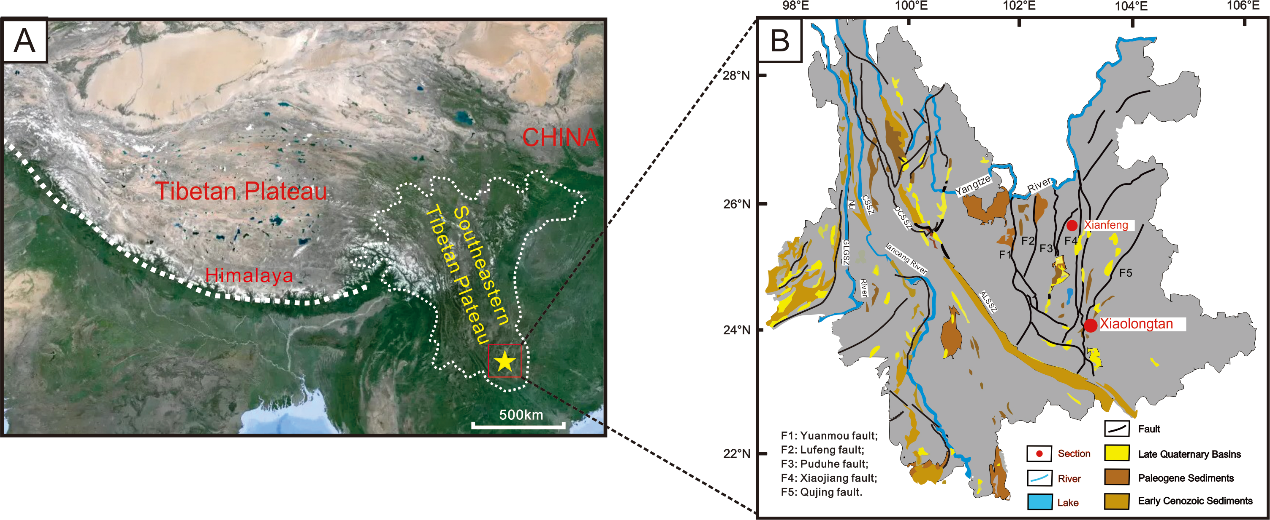 印度板块与欧亚板块碰撞形成青藏高原是新生代最重要的地质事件之一,对此后全球范围内的气候演化、欧亚大陆内部的地形地貌、植被生态演化等表生地球系统都产生了重大影响。20Ma以来,青藏高原内部累积的能量推动地壳和上地幔向东移动,青藏高原地壳物质向其东南缘发生大规模运移,导致多期次隆升,但构造隆升具体细节以及与区域内表生沉积系统缺乏隆升过程的沉积记录。