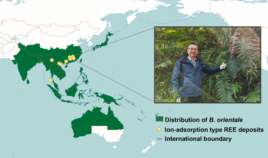 为探索超积累植物对稀土元素的富集机制,中科院广州地球化学研究所博士生何柳青在导师朱建喜研究员的指导下,并与美国弗吉尼亚理工大学荣誉教授Michael Hochella合作,共同开展了相应的研究工作。经过前期调查与分析,团队将研究目光聚焦于一种名为“乌毛蕨”(Blechnum orientale)的蕨类植物上。乌毛蕨不仅为华南地区风化壳型稀土矿区的优势植物,还是稀土元素的超积累植物。它能够将稀土超积累到叶片中,并继承稀土矿土壤中富轻稀土的特征。