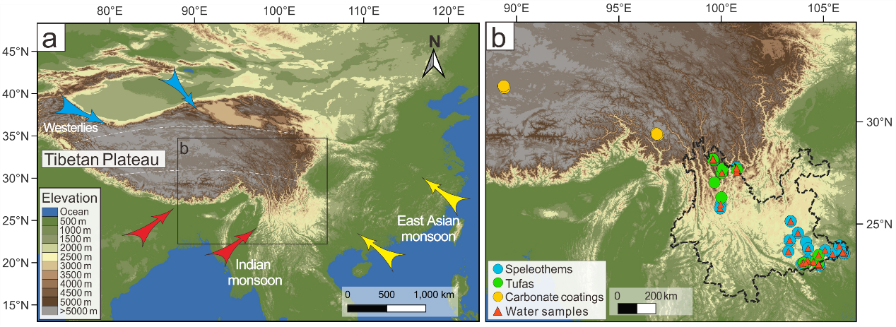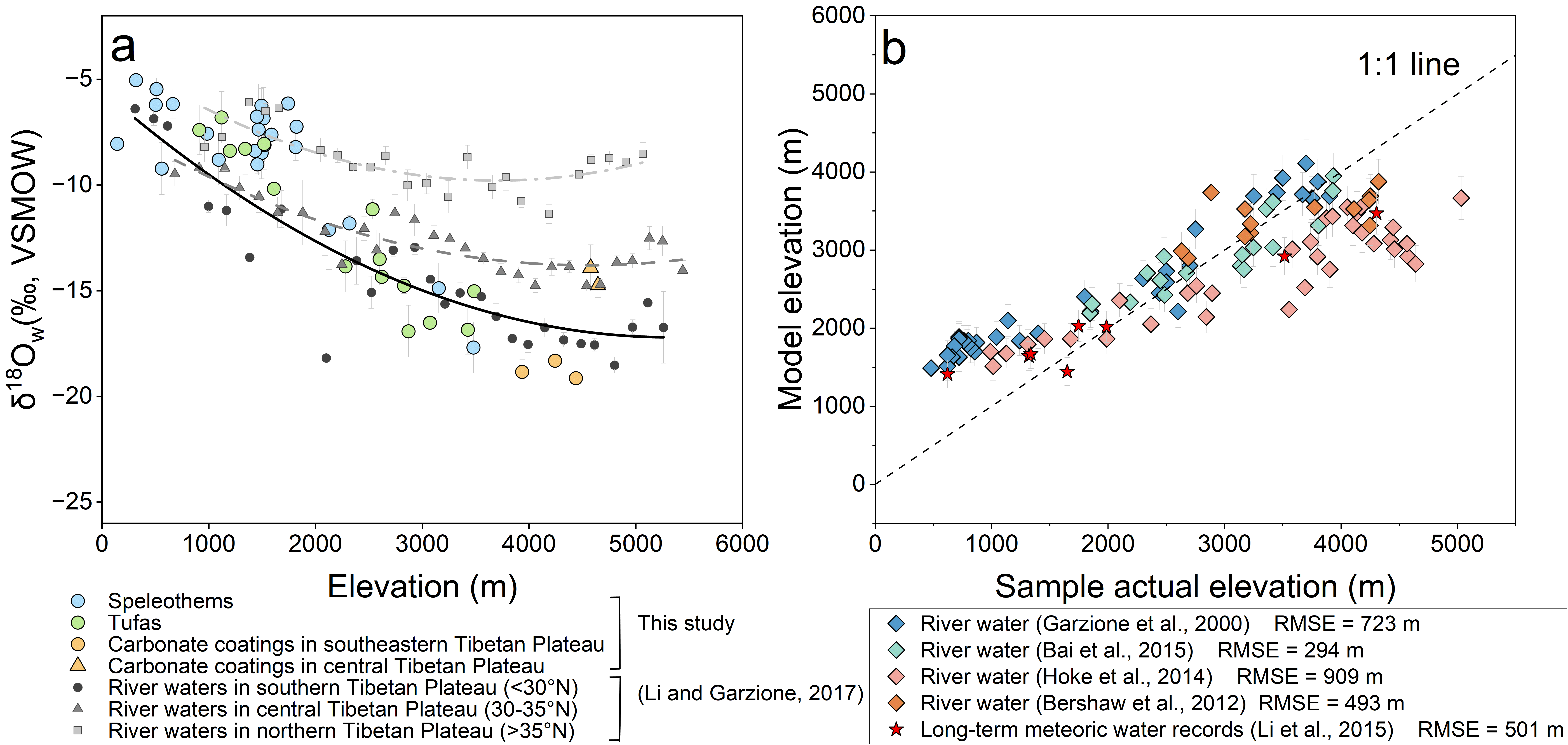 孔凯、郭炀锐,邓文峰等-JGR-ES: 青藏高原东南缘现代陆相碳酸盐稳定同位素高程效应评估及对古高程重建的启示