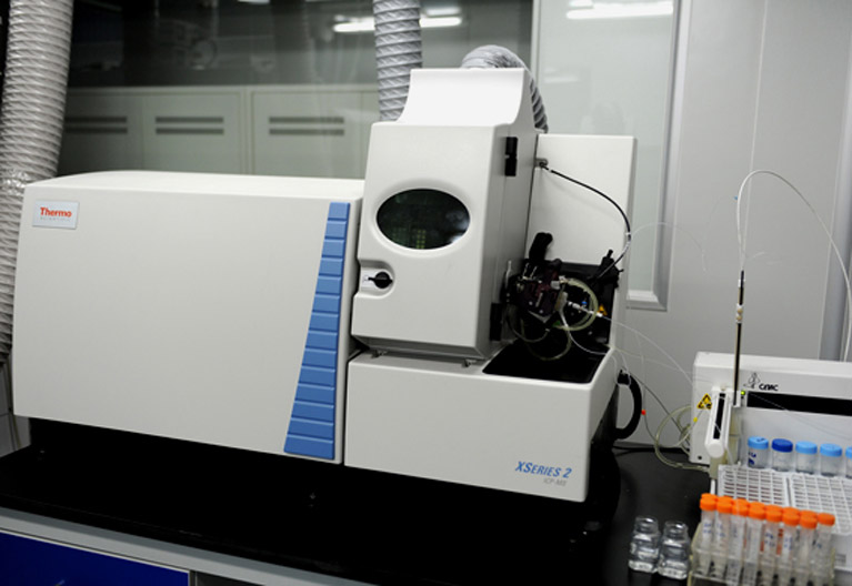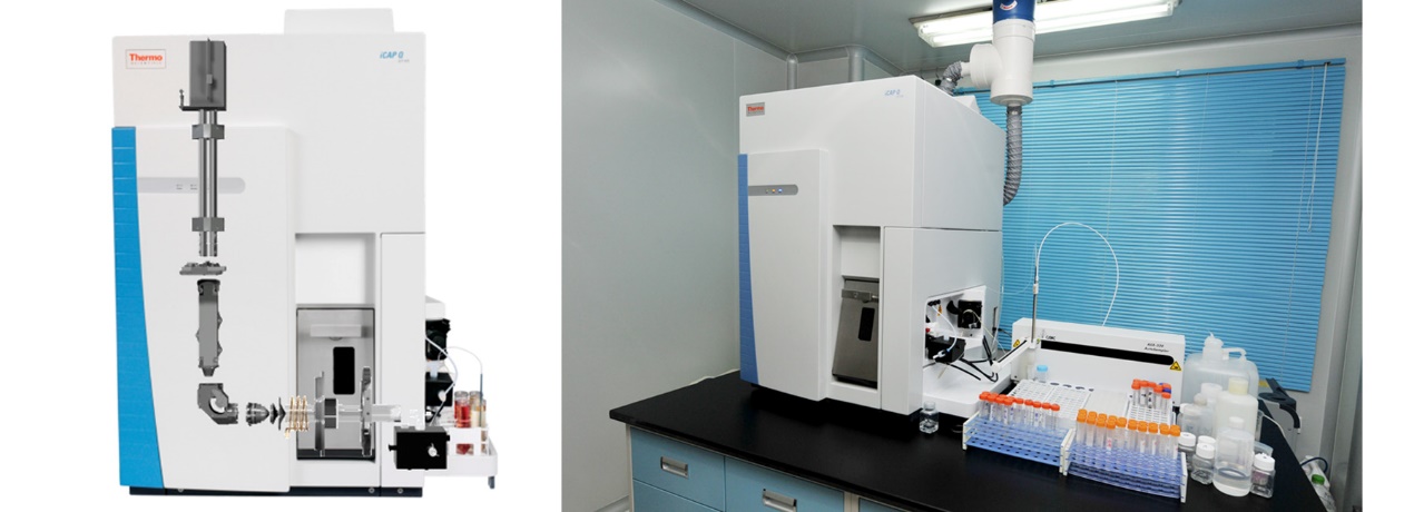 Thermo iCAP Qc电感耦合等离子质谱仪采用全新RF发生器与炬管设计,无需屏蔽圈,操作方便;专利的截取锥嵌片设计,可以适应各种复杂基体的样品;全新RAPID 透镜90° 拐弯设计可提高离子传输效率、更有效地去除中性分子的干扰;QCell碰撞反应池可以更高效地去除干扰,方便各种分析模式切换。配合全新的软件,仪器性能优良。本仪器主要用于各种岩石、矿物、土壤、溶液和天然水样样品的微量元素的测定
